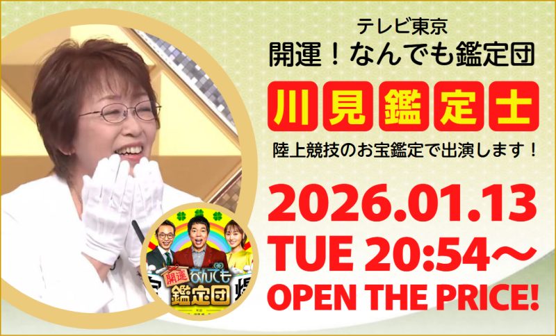 川見店主が鑑定士で出演するテレビ東京「開運!なんでも鑑定団」は、2026年1月13日(火)20時54分から放送予定です!お見逃しなく!